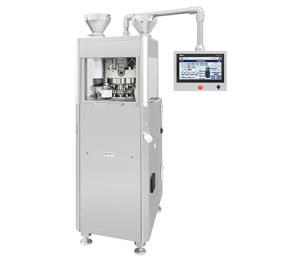 Advanced Rotary Tablet Press Double Layer Model, specifically designed to meet the needs of the pharmaceutical and nutraceutical industries. This versatile machine supports both B and D standard punches, offering flexibility in production while maintaining precise control over the tablet compression process.