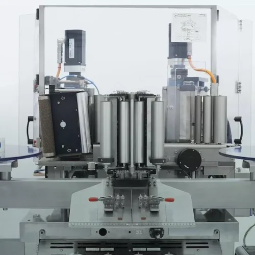 Automatic visual inspection machine for ampoules, vials, cartridges and syringes.